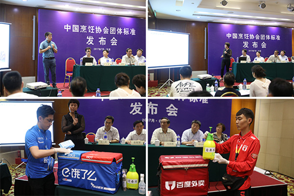 中國烹飪協(xié)會(huì )向餐飲企業(yè)代表贈送標準文本 7月11日,中國烹飪協(xié)會(huì )團體標準發(fā)布會(huì )在北京召開(kāi),T/CCA 001-2017《中國烹飪協(xié)會(huì )團體標準編寫(xiě)指南》、T/CCA 002-2017《“百合花”餐飲業(yè)食品安全和營(yíng)養管理體系要求》、T/CCA 003-2017《消毒餐飲配送箱(包)》三項團體標準于當天在現場(chǎng)發(fā)布。中國烹飪協(xié)會(huì )會(huì )長(cháng)姜俊賢、副會(huì )長(cháng)馮恩援、拉扎斯網(wǎng)絡(luò )科技(上海)有限公司副總裁王三虎,小度信息科技有限公司公共事務(wù)副總裁莊雁斌,希悅爾(中國)有限公司高級經(jīng)理常紅勝、以及來(lái)自聚德華天、西貝、金百萬(wàn)、東方餃子王等十余家企業(yè)代表和新聞媒體共同出席會(huì )議。